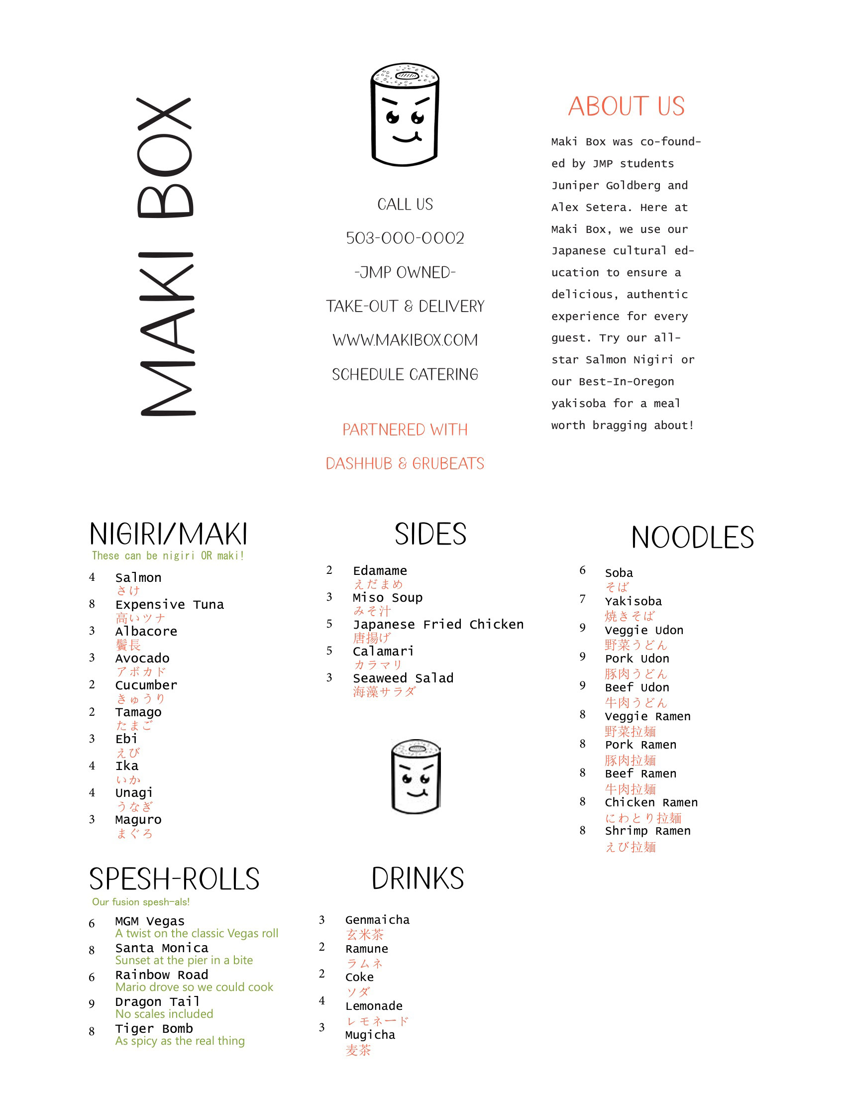 This menu prototype shows my partner's and my language skills asĀ each menu item is translated into Japanese.